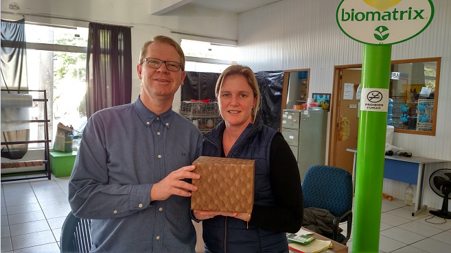 Eliane Rusch, Sócia da Casa das Sementes, recebeu de Vanderlei Henchen da Enfoque um presente comemorativo aos 5 anos como Cliente.