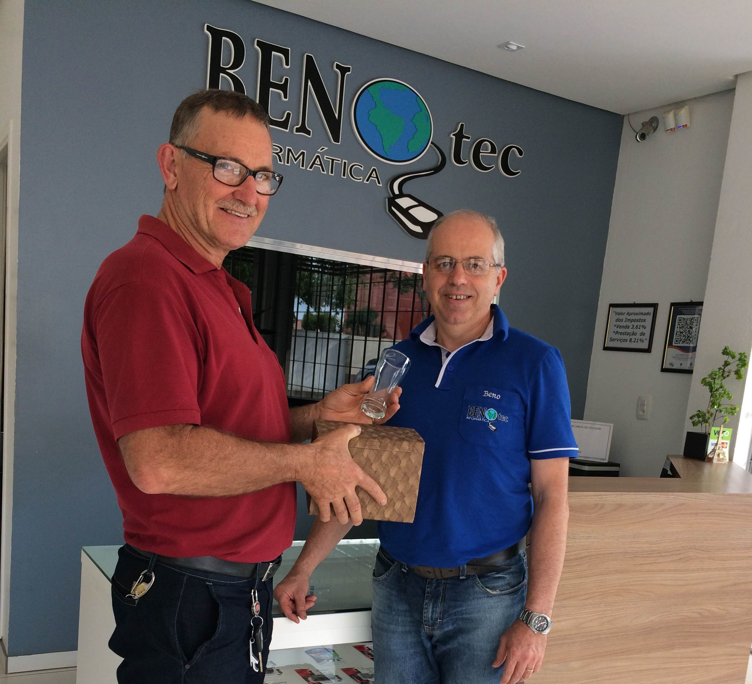 Sérgio Schommer recebeu da Benotec Informática Ltda, nosso credenciado de Santo Cristo, um presente comemorativo aos 5 anos como Cliente.