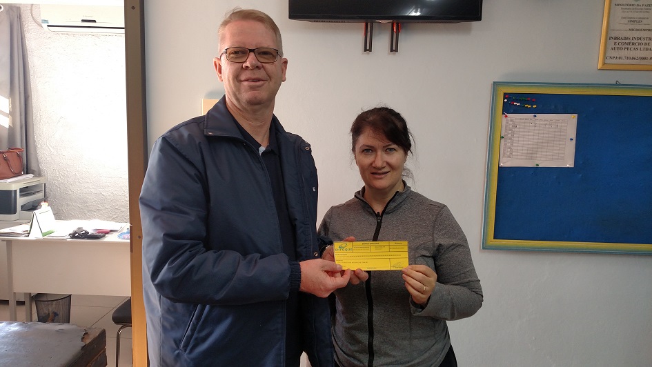 Solange Dimmer de Oliveira, da RPA COMÉRCIO DE AUTOPEÇAS, recebeu de Vanderlei Henchen da ENFOQUE um BÔNUS ENFOQUE de R$ 50,00 para serem utilizados nos Convênios , como presente comemorativo aos 5 anos como Cliente ENFOQUE.