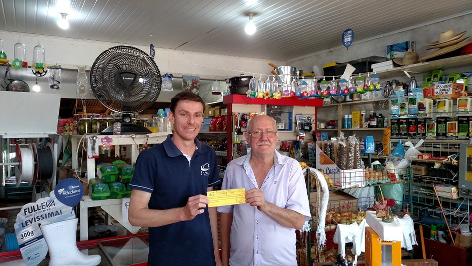 Delmar Giusmin, pela AGRIMEX, recebeu de Maurício Turra Vanzella da ENFOQUE um Bônus ENFOQUE comemorativo aos 5 anos como Cliente. Este Bônus pode ser utilizado para compras junto a Aliadas da ENFOQUE.