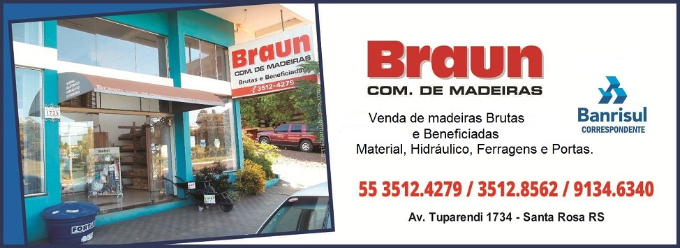 A MADEIREIRA BRAUN comercializa Madeiras Brutas e Beneficiadas, Material Hidráulico, Elétrico e Ferragens.