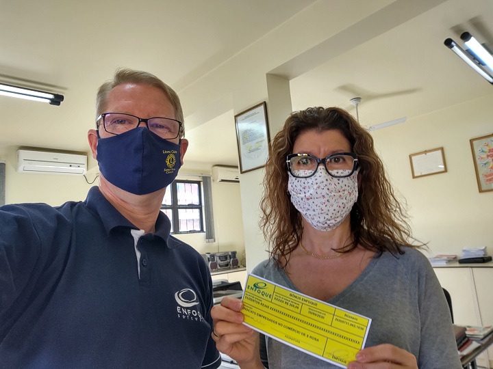 Nara Regina Schmidt, Presidente da Entidade, recebeu de Vanderlei Henchen da ENFOQUE, um Bônus ENFOQUE comemorativo aos 20 anos como Cliente. Este Bônus pode ser utilizado para compras junto a Aliadas da ENFOQUE.
